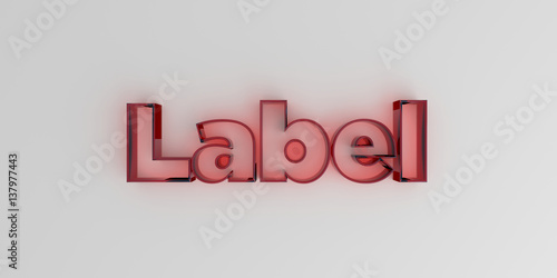 Label - Red glass text on white background - 3D rendered royalty free stock image.