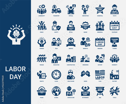 labor day collection dark blue icons