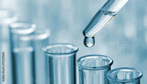 Laboratory Experiment Using Blue-Toned Liquid Droplets In Test Tubes: Advancing Research In The Scientific Field Through Precise Methodology And Analysis.
