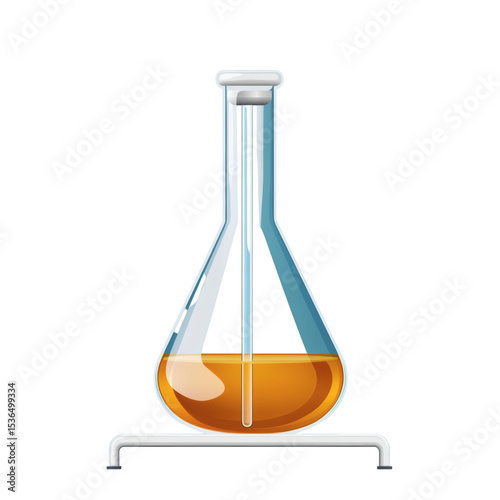 Laboratory flask with orange liquid on a transparent background