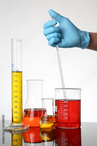Laboratory Glassware and Gloved Hand