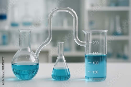 Laboratory Glassware with Blue Liquid in Chemistry Lab. Generated AI