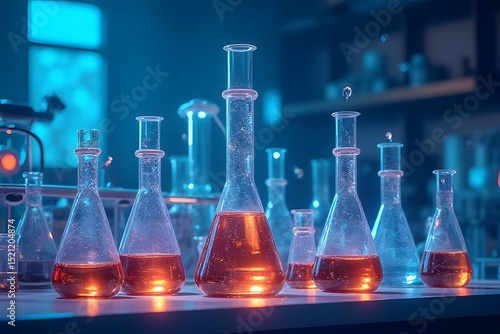 laboratory glassware with colorful liquid