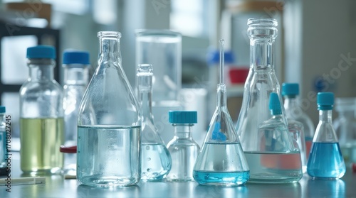 Laboratory Glassware with Colorful Liquids in Scientific Research Environment