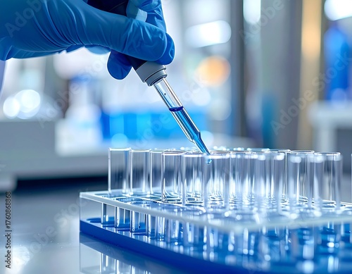Laboratory Research - Pipette Dropping Blue Liquid into Test Tubes.