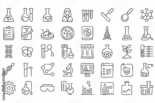 Laboratory Research Line Icons for Medical and Scientific Analysis