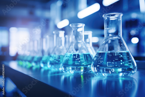 Laboratory with Test Tubes, Blurred Soft Focus Background - Lab Flasks, Ideal for Text Overlay - Science and Research - AI Generated