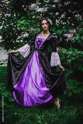 Lady in black and purple baroque dress