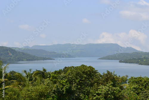 lake inside the mountains, this lake is backwaters of mulshi dam in tamhini ghat of Pune, Maharashtra, India