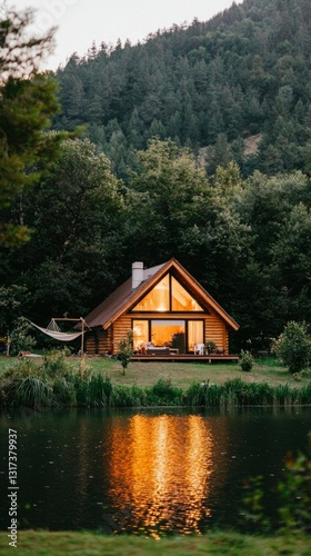 Lakeside Cabin at Sunset