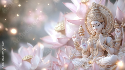 Lakshmi's blessing: elegant representation of Lakshmi, highlighting her role as goddess of fortune and prosperity, embodying essence of her sacred qualities and the significance of her divine favor