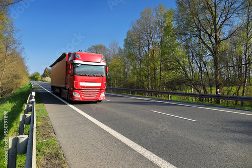 Landscape with a moving truck on the highway.