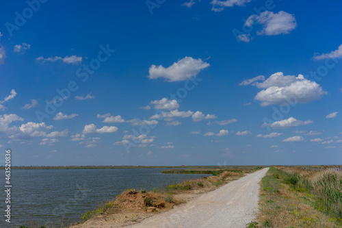 Landscape with a road near Lake Sasyk-Sivash, Crimea.