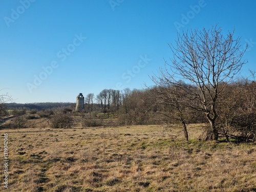 Landschaft beim Bismarckturm in Osterwieck im Frühling, Harz, Sachsen-Anhalt