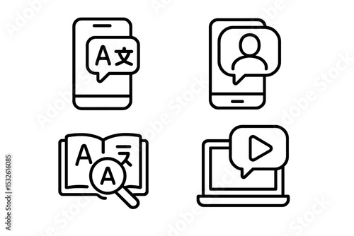 Language tools icons on gray background