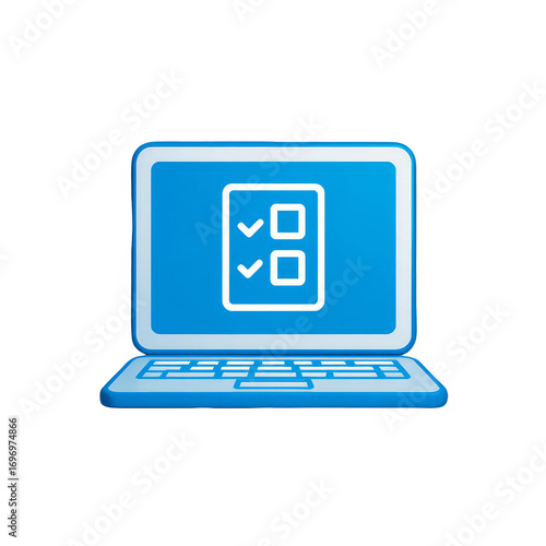 Laptop checklist survey form feedback questionnaire online digital computer technology blue vector illustration , isolated on transparent background