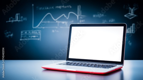 Laptop computer sits on desk with white screen modern portable computer displays blank white interface