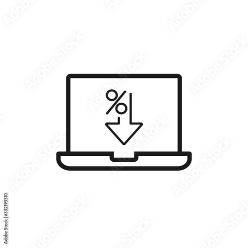 Laptop Computer with download sign, percent down vector illustration