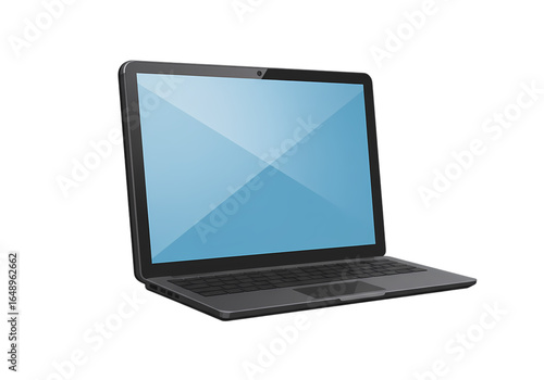 Laptop Computer with Light Blue Screen on transparent background