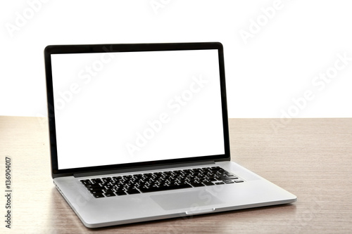 Laptop on wooden desk