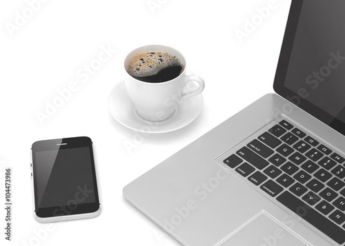 Laptop smartphone and coffee cup
