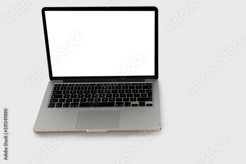 Laptop with blank screen isolated on white background