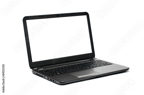 Laptop with blank white screen. Isolated on white background