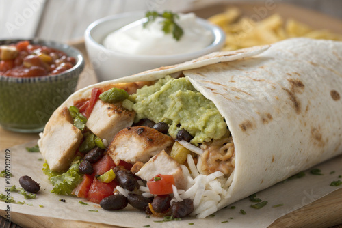 Large Burrito Filled with Grilled Chicken, Guacamole, and Rice
