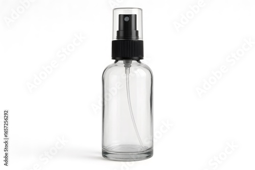 Large Clear Glass Spray Bottle with Black Cap for Cosmetic Packaging Mockup
