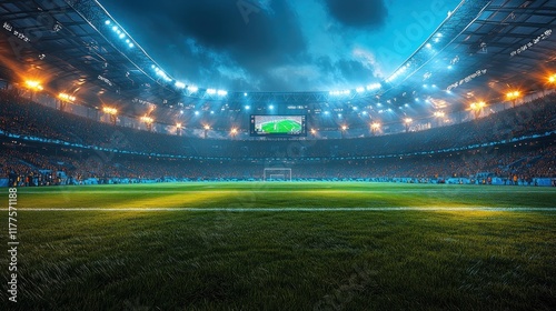 Large football stadium with lights