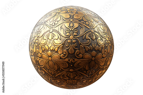 large golden ball with patterns isolated on transparent background
