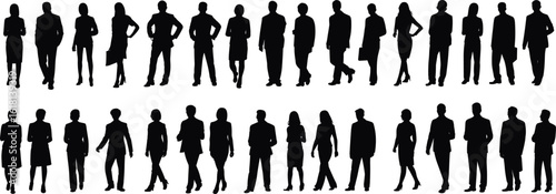 Large Group of Silhouetted Business Professionals in Motion Representing Corporate Diversity, Teamwork, Leadership, Career Growth, and Lifestyle Action