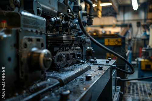 Large industrial machine is operating and producing metal parts in a factory