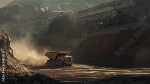 Large Mining Dump Truck Driving in Open Pit Mine