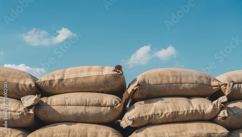 Large protective sandbags under a clear blue sky