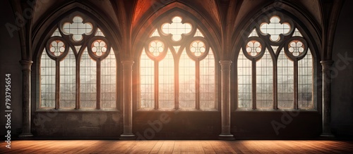 Large room with three big windows and wooden floor