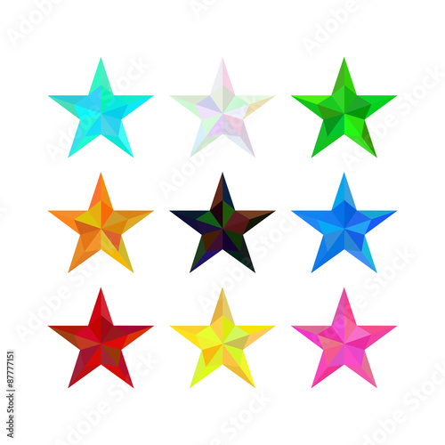 large set of low poly polygon different colors stars