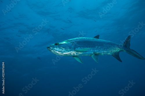 Large tarpon on coral reef at Bonaire Island in the Caribbean