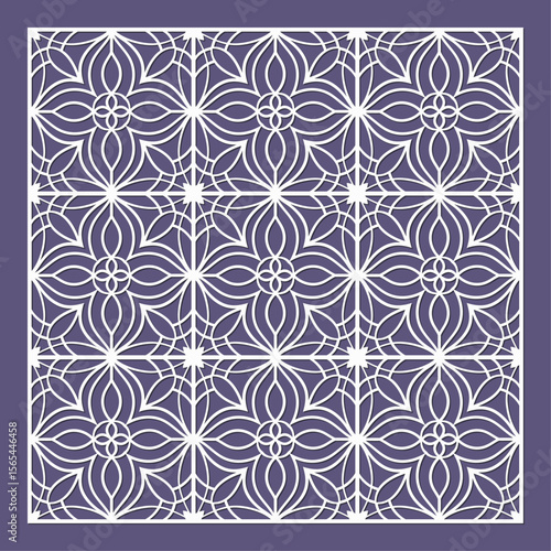 Laser cut pattern. Vector of cutting templates with abstract geometric ornament, grid, mesh, lines, chevron. Decorative stencil for laser cut of wood, metal, plastic. Aspect ratio 1:1