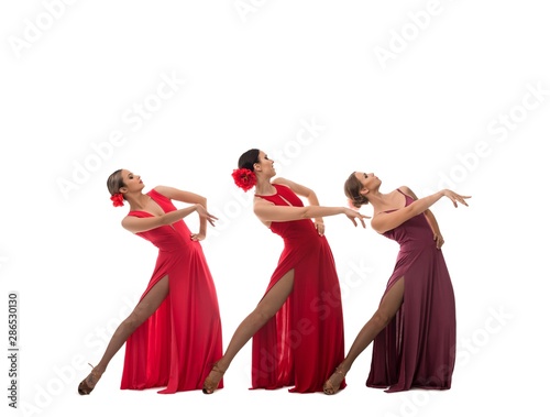 Latino dancers in sexy dresses view