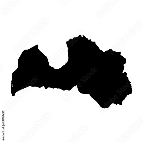 Latvia high detailed vector representation of country silhouette in solid black on white background. For educational, decorative, or informational use showcasing the national outline.