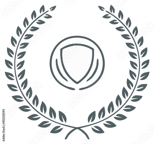 Laurel wreath emblem with shield symbol representing protection and success