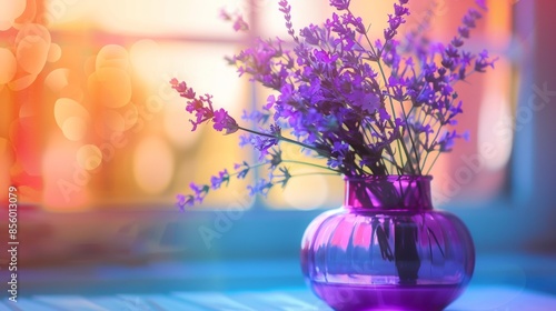 Lavender Flowers in a Purple Vase with Bokeh Background