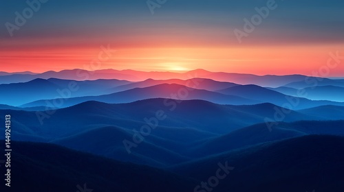 Layered mountain ranges under vibrant sunset
