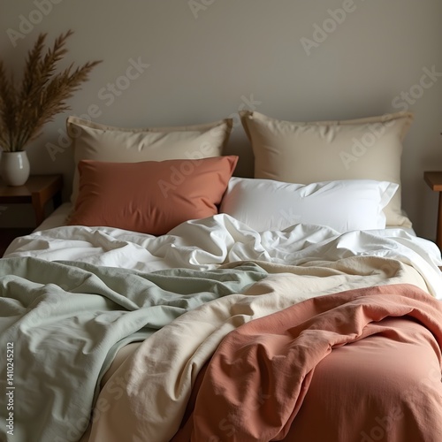 Layered Textures – Artistic Bedding Composition in Earthy Tones