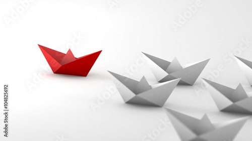 Le bateau en papier rouge ouvre la voie au bateaux blancs. Métaphore suiveurs suivi.