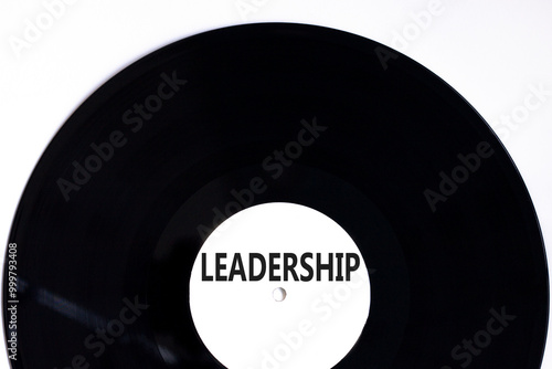 Leadership symbol. Concept word Leadership on beautiful black white vinyl disk. Beautiful white background. Business leadership concept. Copy space.