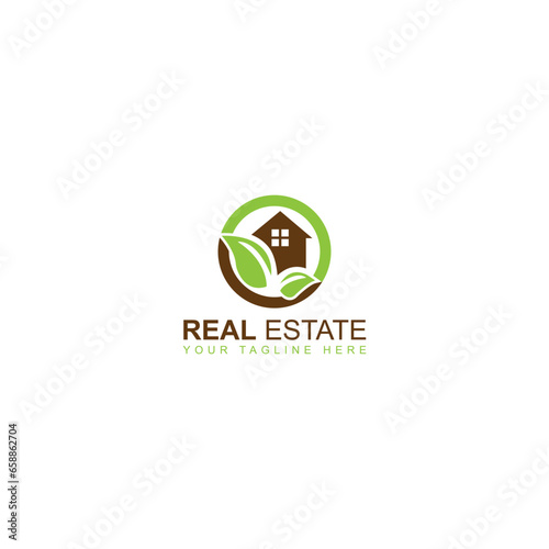Leaf house green unique logo vector