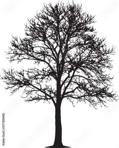 Leafless Winter Tree Silhouette Vector – Black Seasonal Forest Scene Graphic