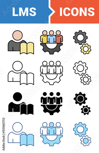 Learning management system icon set with multiple style collection.